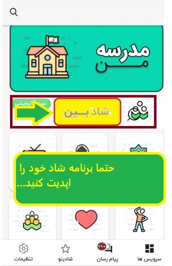 - با استفاده از اپلیکیشن شاد و یا برنامه شاد تحت وب وارد شده و در صفحه نخست عبارت “شادبین” را انتخاب نمایید.