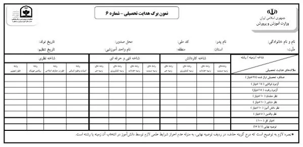 دانلود فرم هدایت تحصیلی پایه نهم